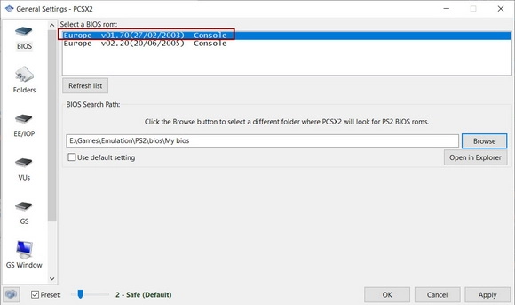 - 1.7.0: Try pcsx2-avx2.exe. If the program fails to start, then use pcsx2.exe.