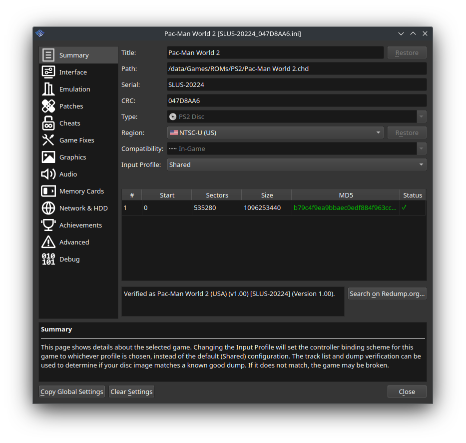 To verify the integrity of your dump, right-click on the game you want to check on the game list, then click on properties. You should be greeted with the game properties window. Next up click the verify button under the disc track list.